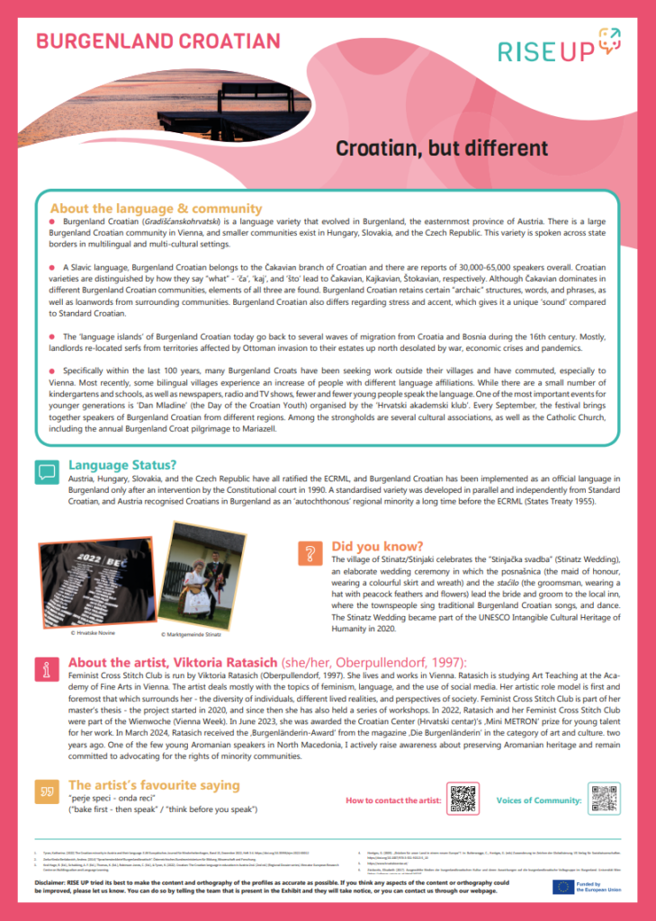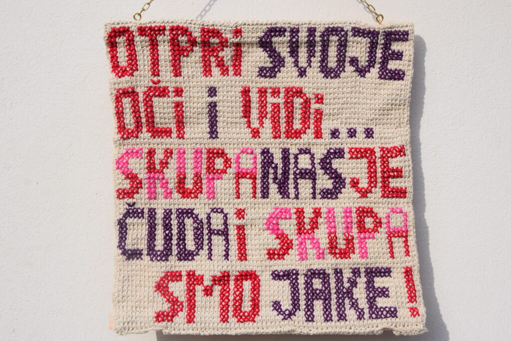 Viktoria Ratasich (Oberpullendorf, 1997): lives and works in Vienna and runs a Feminist Cross Stitch Club. Ratasich is studying Art Teaching at the Academy of Fine Arts in Vienna. The artist deals mostly with the topics of feminism, language, and the use of social media. Her artistic role model is first and foremost that which surrounds her – the diversity of individuals, different lived realities, and perspectives of society. Feminist Cross Stitch Club is part of her master’s thesis – the project started in 2020, and since then she has also held a series of workshops. In 2022, Ratasich and her Feminist Cross Stitch Club were part of the Wienwoche (Vienna Week). In June 2023, she was awarded the Croatian Center (Hrvatski Centar)’s ‘Mini METRON’ prize for young talent for her work. In March 2024, Ratasich received the ‘Burgenländerin-Award’ from the magazine ‘Die Burgenländerin’ in the category of art and culture.”